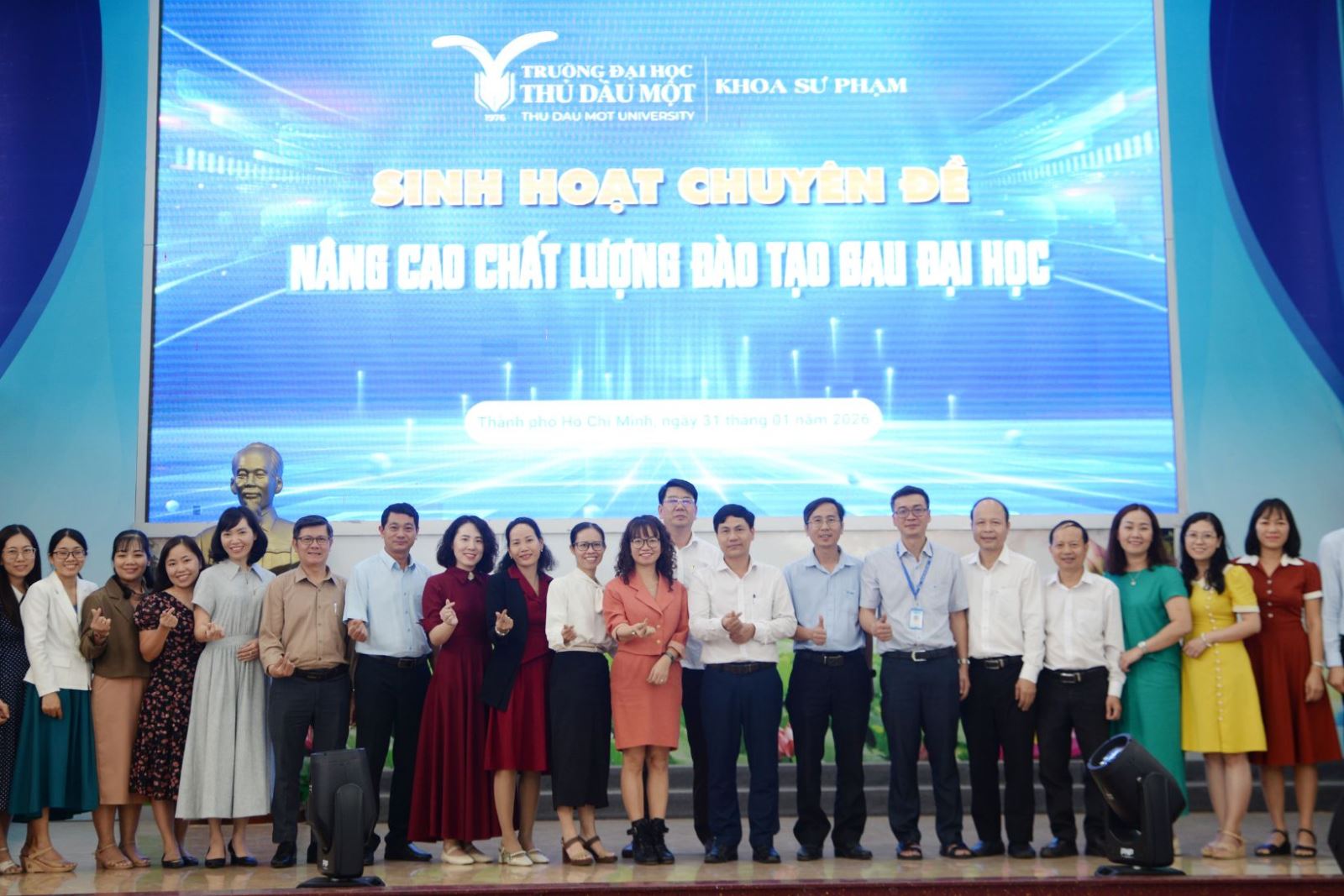 Ngày 30/6/2026, Khoa Sư phạm – Trường Đại học Thủ Dầu Một đã tổ chức chương trình sinh hoạt chuyên đề với chủ đề “Nâng cao chất lượng đào tạo sau đại học tại Trường Đại học Thủ Dầu Một”, nhằm đánh giá thực trạng và đề xuất giải pháp nâng cao hiệu quả đào tạo trình độ sau đại học thuộc khối ngành Sư phạm trong giai đoạn tới.