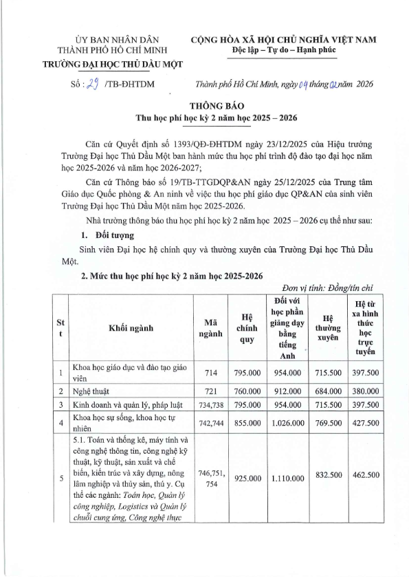Thông báo về việc thực hiện giảng dạy, học tập trực tuyến sau Tết Nguyên đán 2026