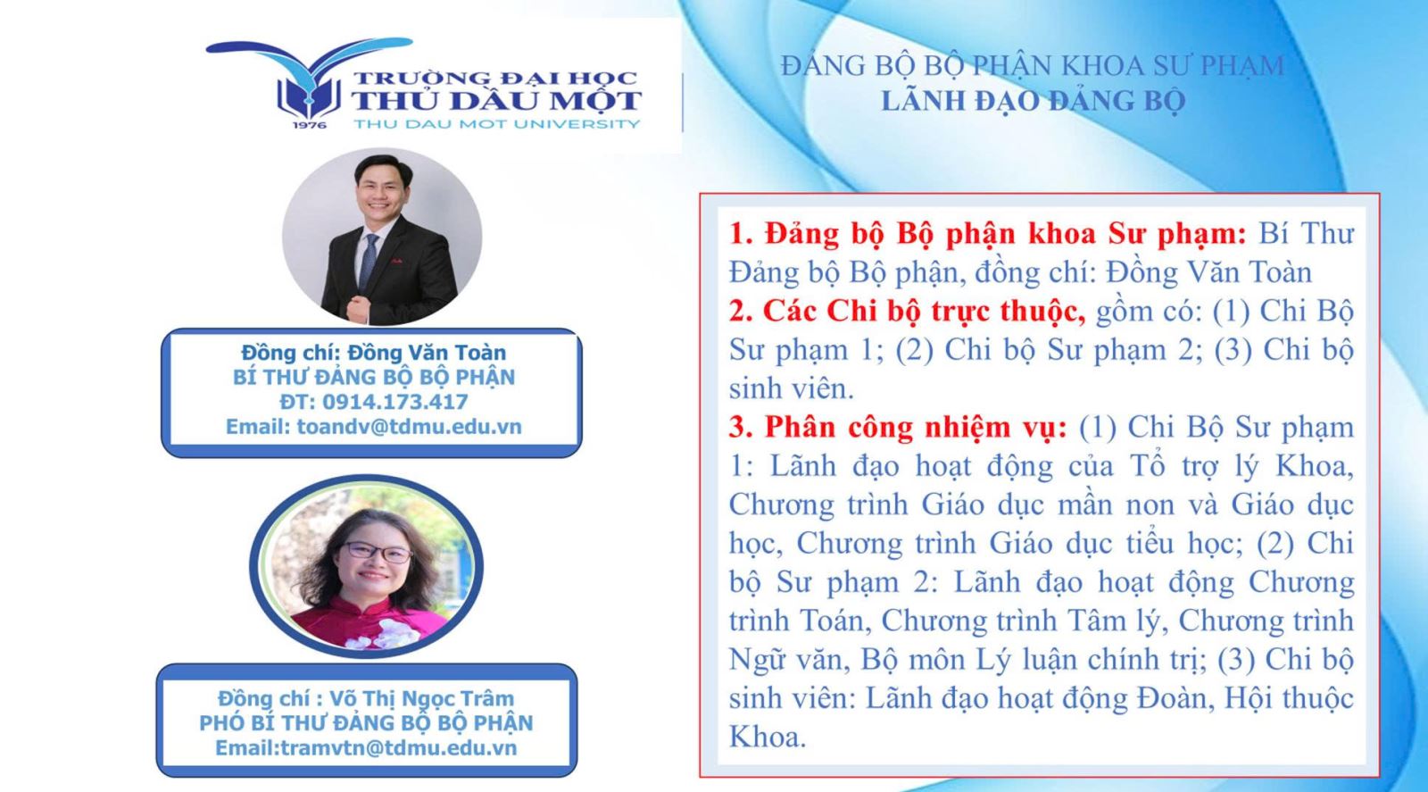 CƠ CẤU TỔ CHỨC ĐẢNG BỘ BỘ PHẬN KHOA SƯ PHẠM