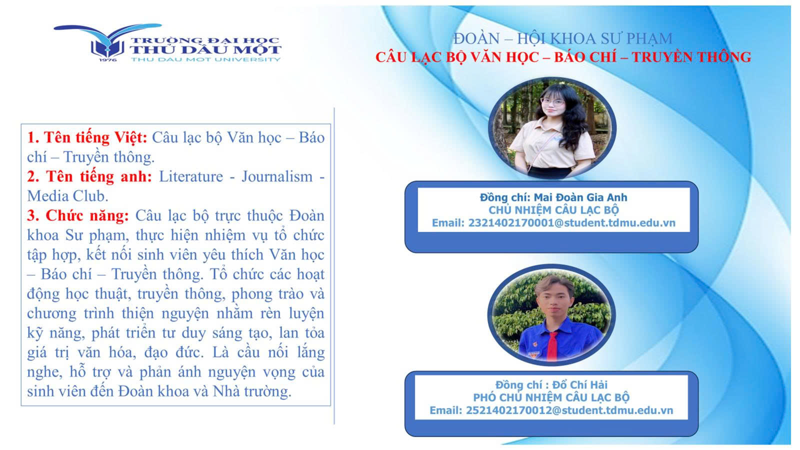 GIỚI THIỆU CÂU LẠC BỘ VĂN HỌC - BÁO CHÍ - TRUYỀN THÔNG