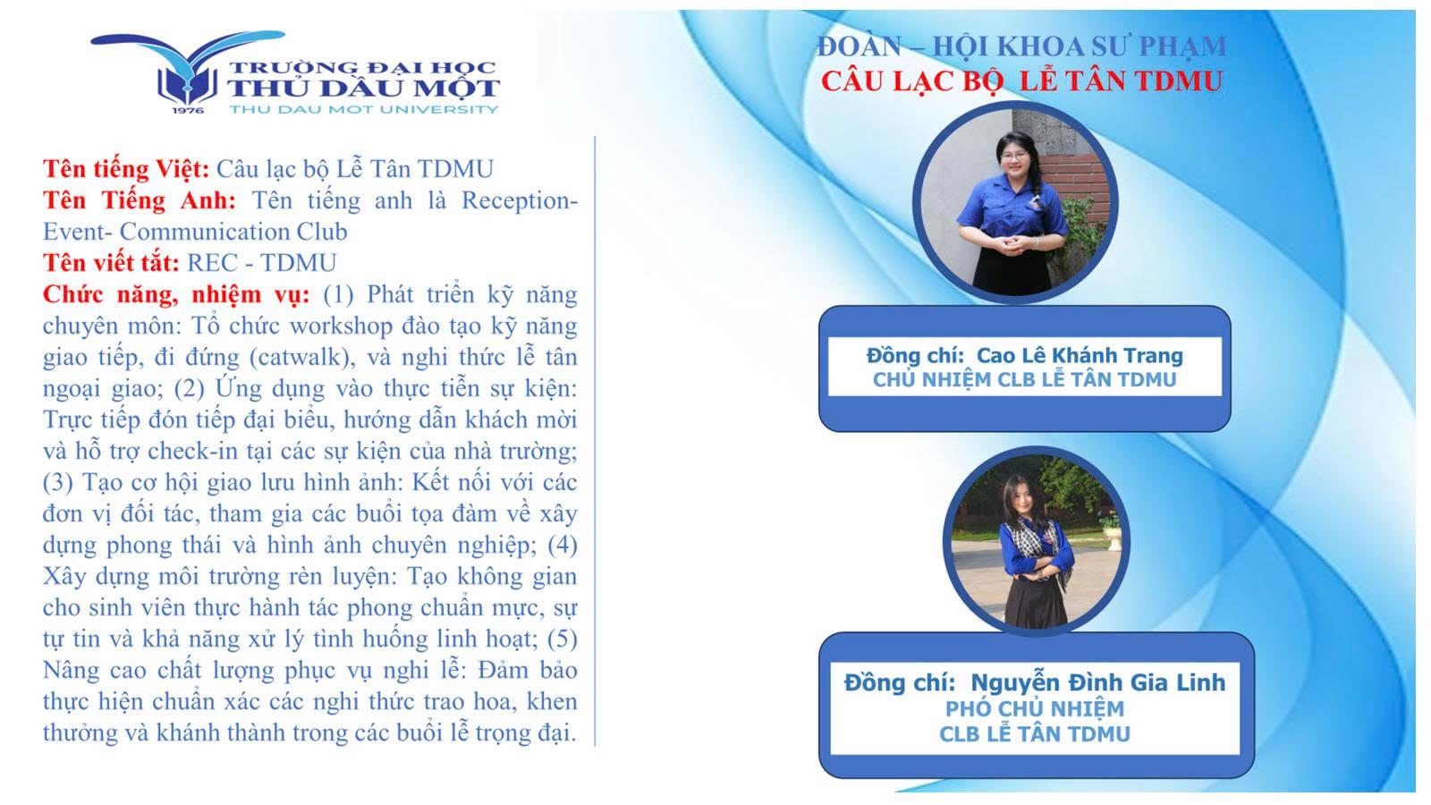 GIỚI THIỆU CÂU LẠC BỘ LỄ TÂN