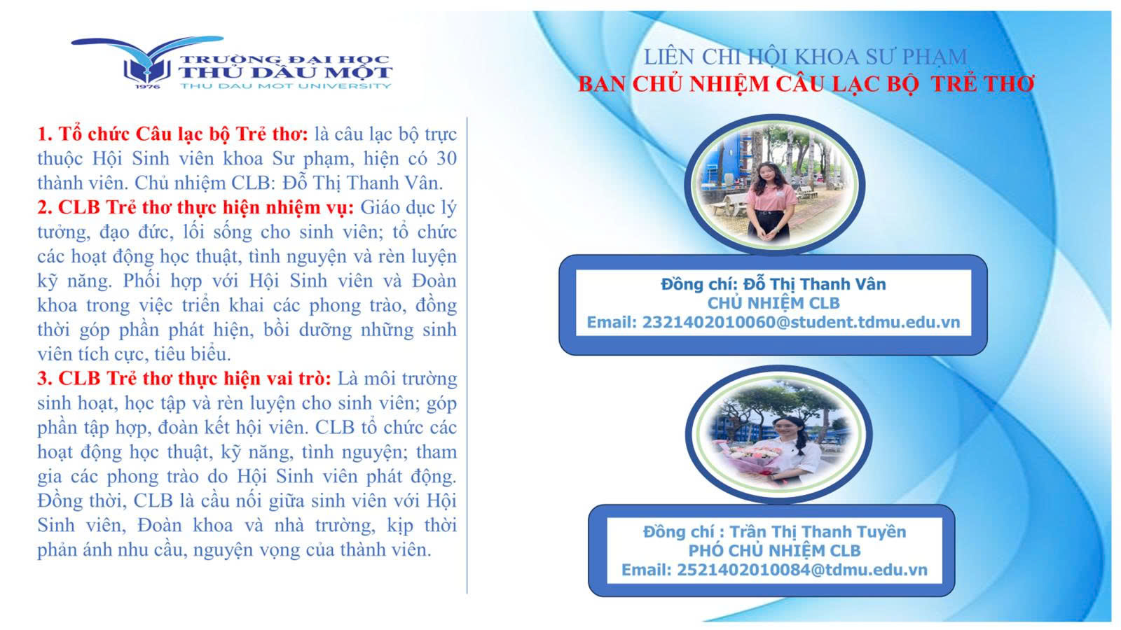 GIỚI THIỆU CÂU LẠC BỘ TRẺ THƠ