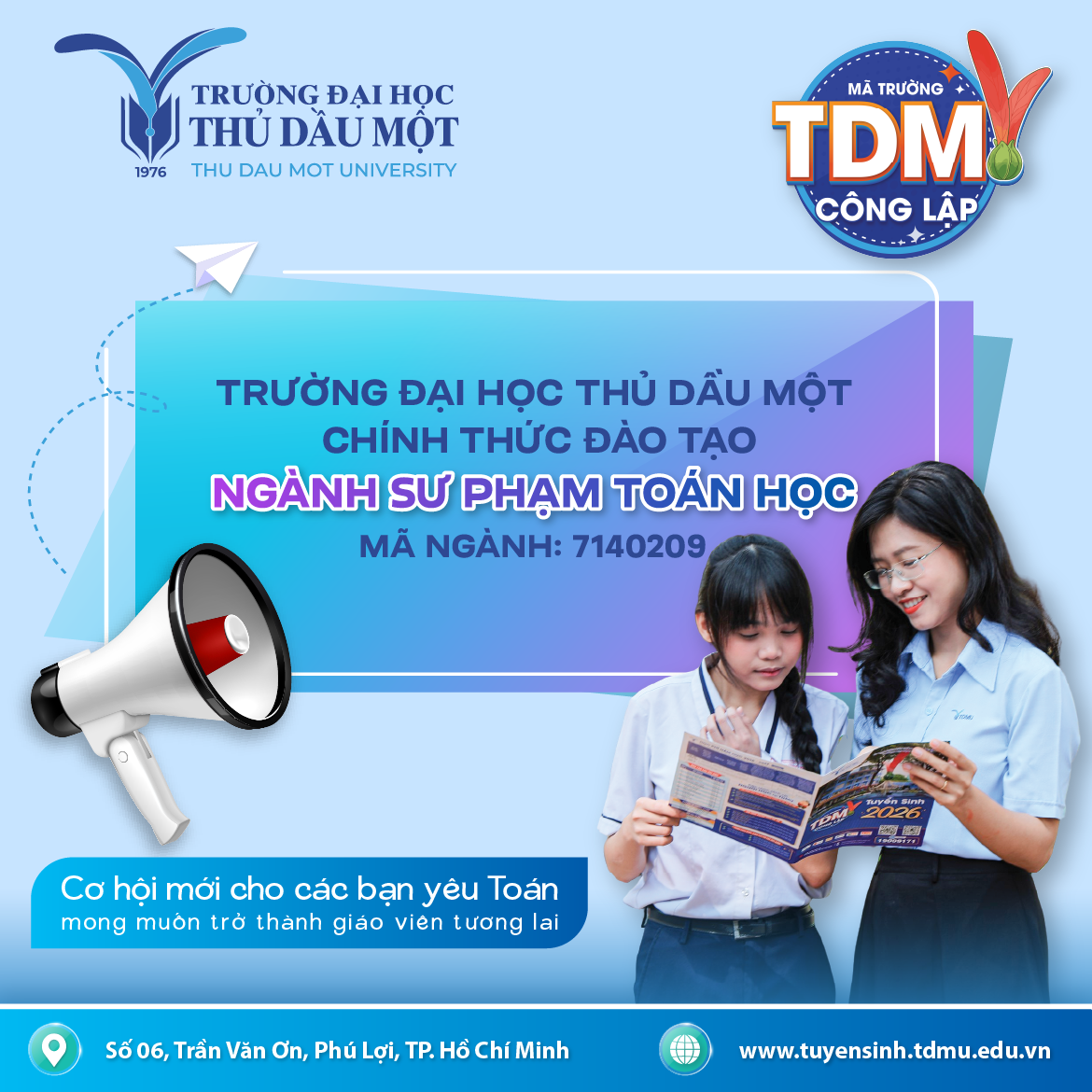 Ngày 08/4/2026, Bộ Giáo dục và Đào tạo ban hành Quyết định số 830/QĐ-BGDĐT cho phép Trường Đại học Thủ Dầu Một đào tạo ngành Sư phạm Toán học trình độ đại học (mã ngành 7140209). Trên cơ sở đó, nhà trường chính thức đưa ngành học này vào kế hoạch tuyển sinh năm 2026.